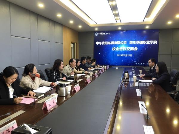 3月20日,中车贵阳车辆有限公司人力资源部部长申雅婷、主管杨道义到校开展校企合作交流。学校校长赖芳、党委副书记刘昊君,教务处、就业处、对外合作处、机车车辆学院、城轨车辆学院等主要负责人,铁道工电学院和就业处相关工作人员出席交流会,刘昊君主持交流会。