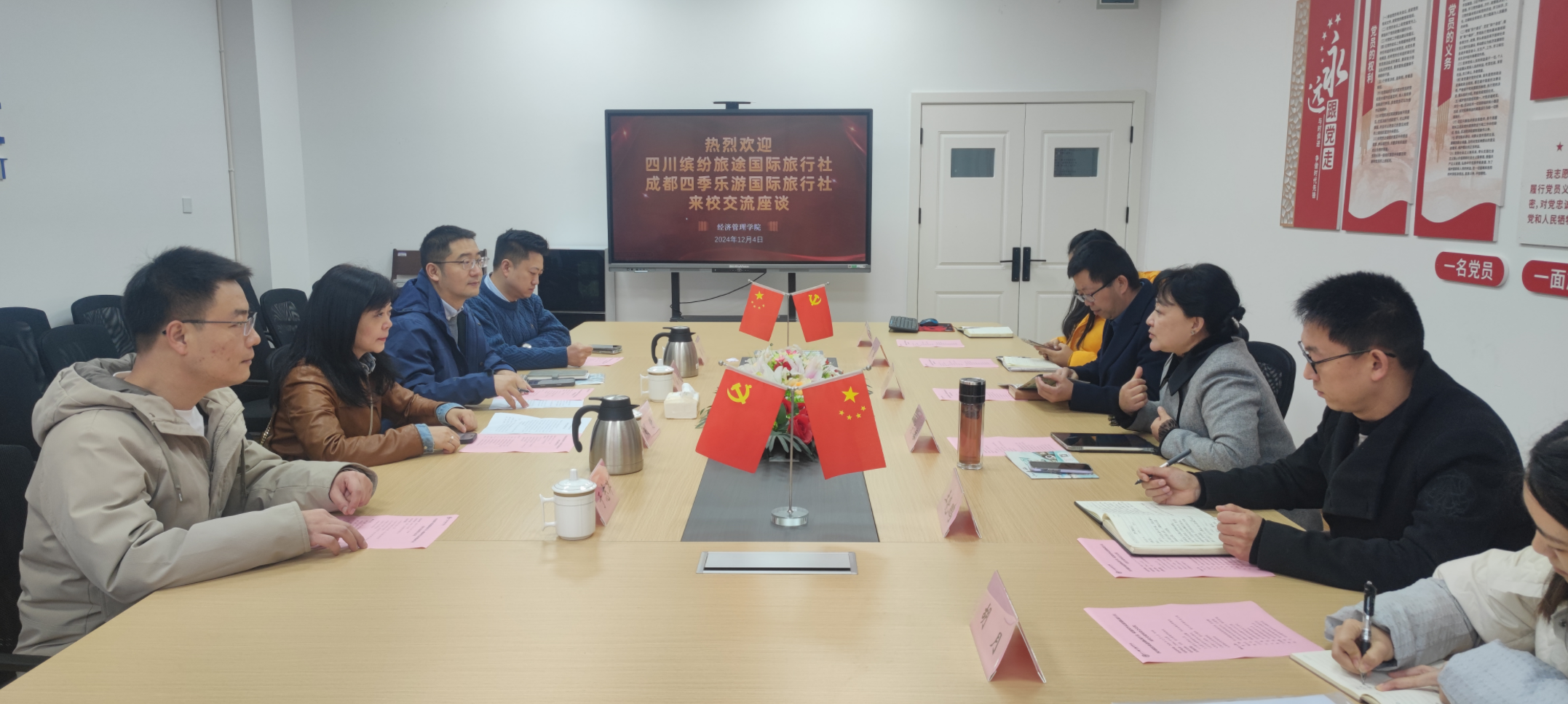 为更好融入轨道交通产业链,创造校企合作共赢的良好局面,12月4日上午,四川缤纷旅途国际旅行社总经理胡静,成都四季乐游国际旅行社总经理梅洪戈、副总经理薛波以及熊猫专列成都号列车主管于志洋一行应邀莅临beat365经济管理学院洽谈交流合作。经济管理学院党总支书记刘辉、院长文容以及教研室主任贾瑛等参加了座谈会。