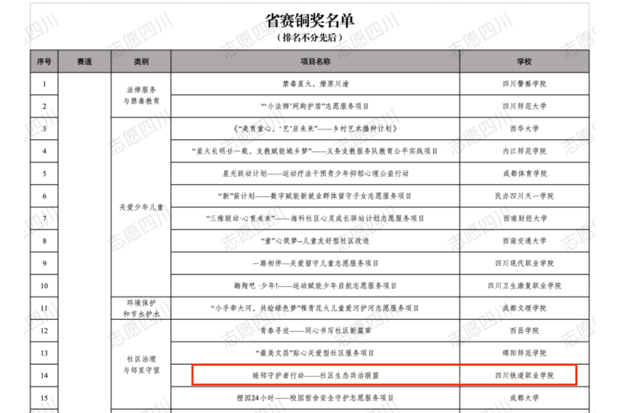 学院在2025年川渝大学生志愿服务项目大赛中获得铜奖