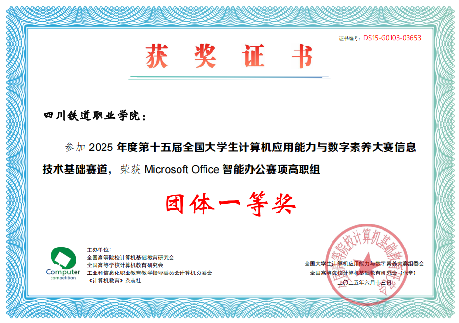 近日,第十五届全国大学生计算机应用能力与数字素养大赛全国总决赛圆满落幕。通过“校赛-省赛-全国总决赛”层层选拔,最终10名学生在全国决赛中获得名次,其中一等奖3名,二等奖6名,三等奖1名,同时荣获Microsoft Office智能办公赛项、WPS AI智能办公赛项高职组等2个团体一等奖。