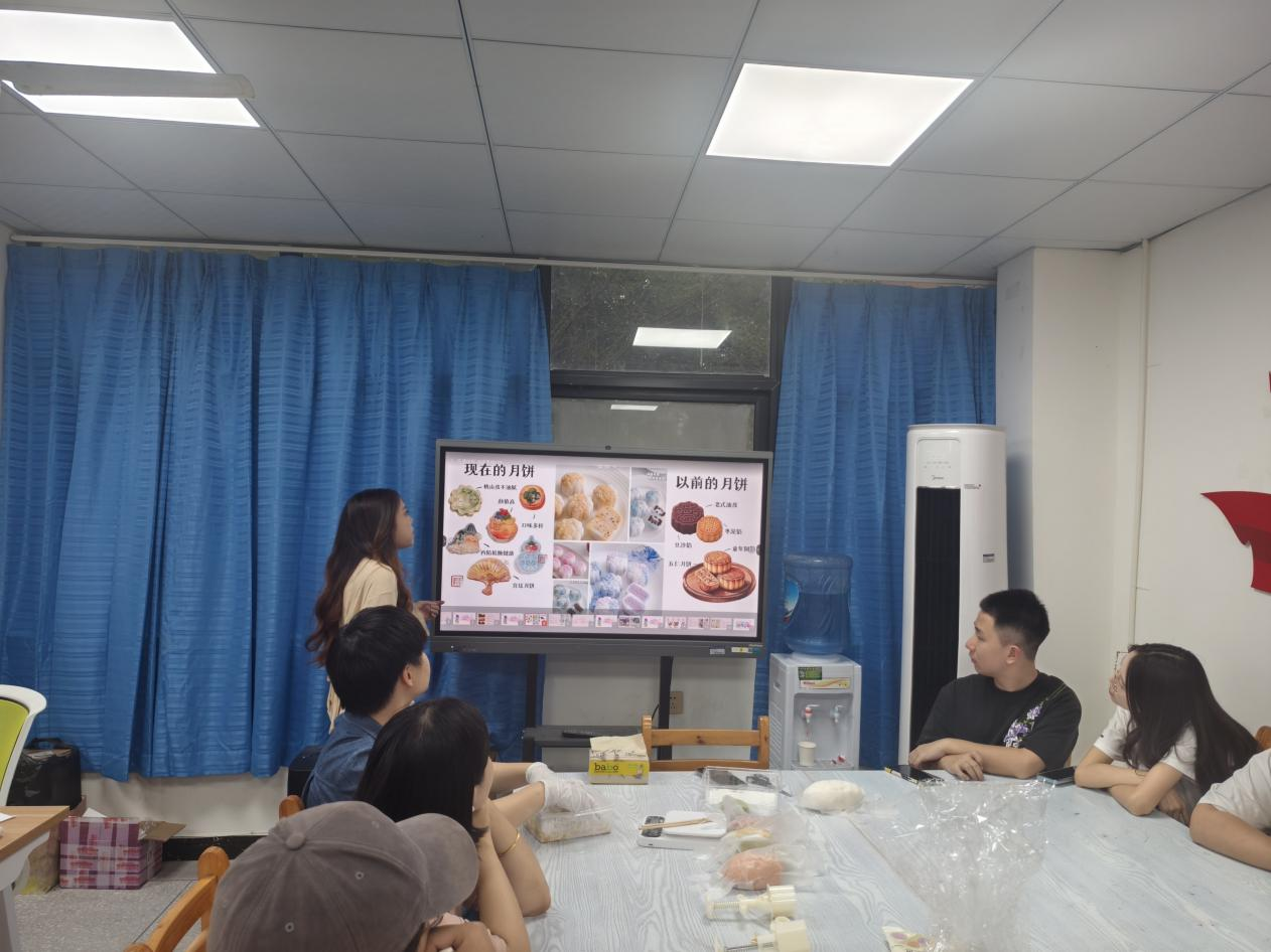 活动中,“经纬匠心社”韩湘同学为师生详细讲解了冰皮月饼的制作技巧,从面团揉制到馅料搭配,再到模具使用,逐步演示,确保零基础参与者快速上手。现场欢声笑语不断,师生围坐交流,有的专注调整月饼造型,有的分享创意馅料搭配,营造了欢乐祥和的活动氛围。“以前都是买月饼,这次和老师同学一起做,感觉特别亲切,就像一家人过节!”参与同学兴奋地表示。同学们亲手体验中秋习俗,感受中华优秀传统文化魅力,增强文化自信与民族认同感,有学生反馈 “活动有趣又有意义,希望能够举办更多类似的手工制作活动”。