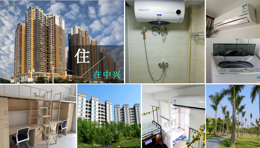 10、中兴通讯基地周边有餐厅、超市、医院、运动场、公交站等设施,员工工作、生活便利。