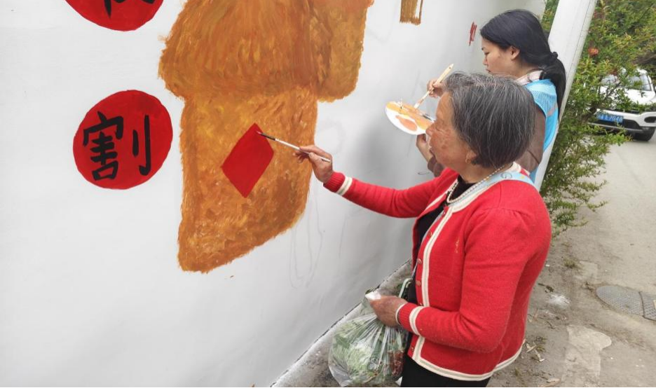 志愿者们也热情邀村民们一起参加活动,共同分享乡村趣事,用笔刷绘就美好图景。“没想到自己画得这么好,看着老墙变新颜,特别有成就感”,一位参与活动的居民表示。一幅幅栩栩如生的墙绘作品,不仅美化了乡村环境,更生动展现了乡村的历史底蕴,成为乡村一道亮丽的风景线。