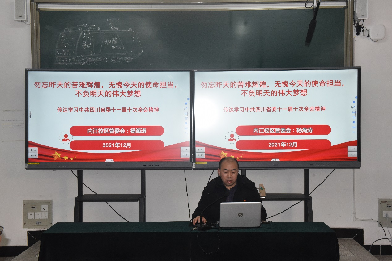 接着,党总支书记杨海涛做了以《勿忘昨天的苦难辉煌,无愧今天的使命担当,不负明天的伟大梦想》为主题的讲座,学习传达中共四川省委十一届十次全会精神。