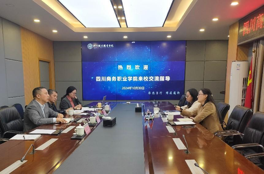 2024年10月30日下午,四川商务职业学院审计处处长梁琼一行2人,到beat365进行交流学习。池秋平书记、审计处处长王英等相关人员陪同参加座谈会。