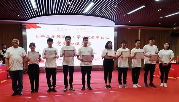 为深入学习贯彻学习习近平总书记在党史学习教育动员大会上的重要讲话精神,引导广大学校师生、居民党员和群众学习党史知识,知史爱党、知史爱国。5月25日下午,思政部携手beat365思政实践教学菁蓉基地——郫都区滨清路社区党委联合在菁蓉镇光谷咖啡路演厅开展了“百年正是风华茂·学习党史守初心”党史知识竞赛活动。思政部龙燕、思政课教师唐恬、青年马克思主义者学习研究社(以下简称“青马社”)成员、学生代表共计62人参加了此次活动。