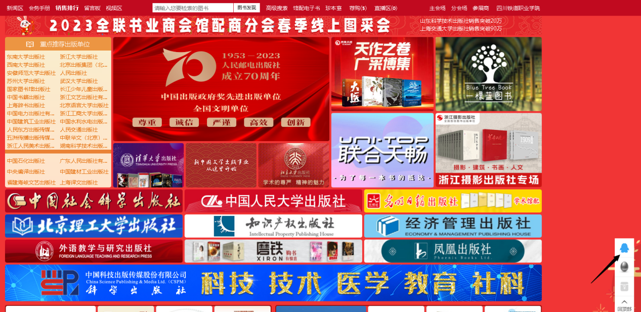 2023全联书业商会馆配商分会春季线上图采会如约而至。本届图书采会将展示数百家出版单位全品种图书、数十万种新书资源应有尽有,一键登录为你营造身临其境的体验感。更有多场出版社直播活动等待大家参与。
