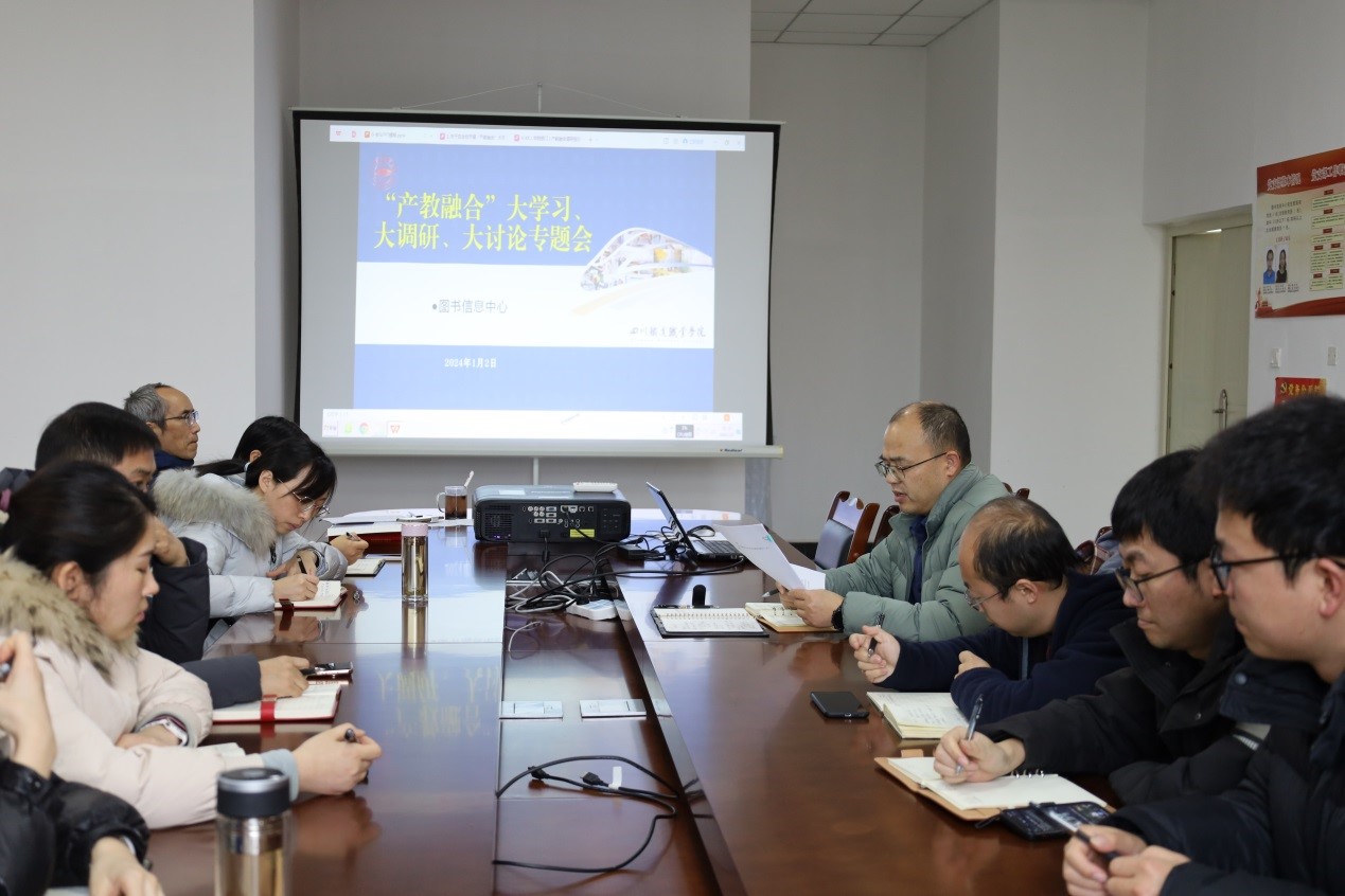 为深入学习贯彻党的二十大精神、习近平总书记对职业教育的重要指示精神和来川视察重要指示精神,推动学校产教融合工作迈上新台阶,1月2日,图书信息中心组织召开“产教融合”大学习、大调研、大讨论专题部署会,何中华主持会议,部门全体人员参会。