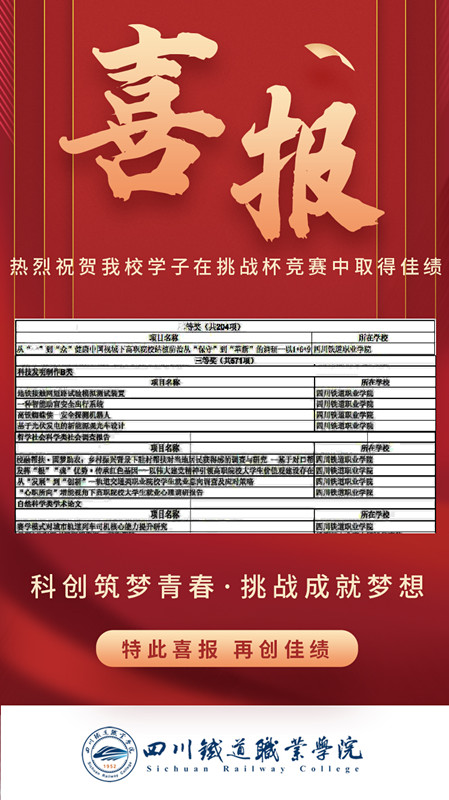 校团委高度重视“挑战杯”竞赛,beat365于3月启动了校内选拔立项工作。参赛师生积极备战、克服困难,充分利用节假日不断打磨、提升作品;校团委持续做好项目孵化、服务、指导工作,抓实抓细,及时跟进项目推进;团队指导老师围绕立德树人根本任务,坚持科研育人,对参赛团队进行了精心指导和专业引领,同学们脚踏实地、认真探索,展现了川铁职院学子敢于拼搏、大胆创新的青春风貌。