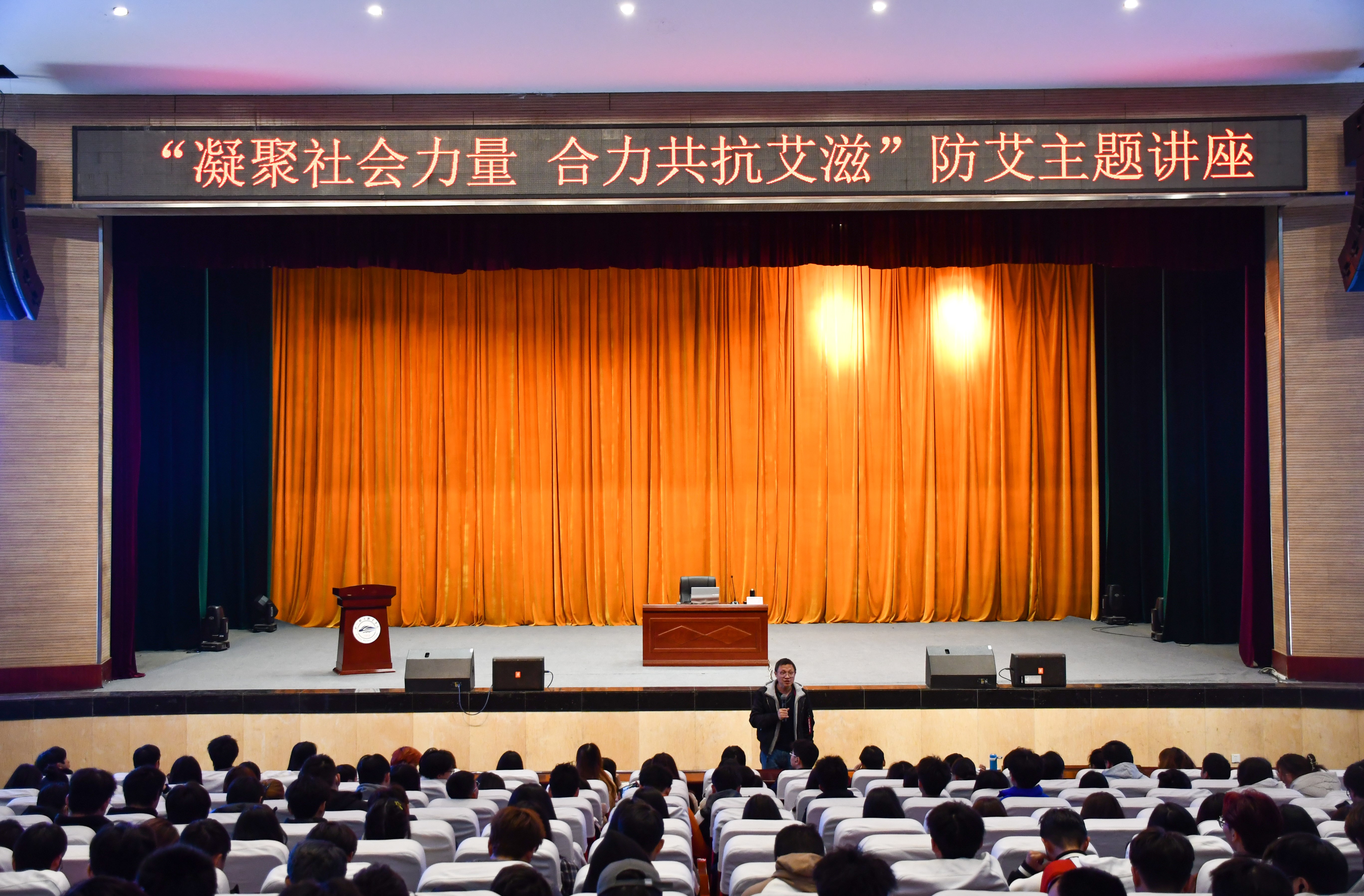 为了让广大青年学生深入了解艾滋病危害,提升艾滋病的防范意识,在世界艾滋病日到来之际,beat365于12月4日下午在大礼堂举办了“凝聚社会力量 合力共抗艾滋”主题讲座。校团委全体老师、校级团学干部、各二级学院的学生代表共计1200余人参加了讲座。讲座由四川省疾病预防控制中心主任技师刘红露讲授。