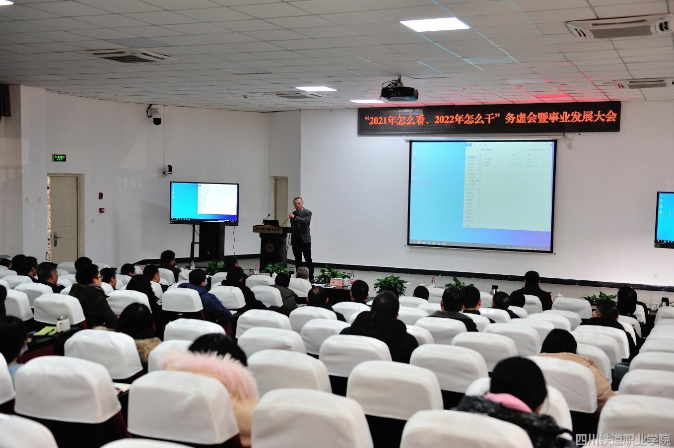刘昊君、吴斌、易刚、黄勇分别就分管工作谈了“2021年怎么看、2022年怎么干”。发展规划处、教务处、科研处、审计处、计划财务处、机车车辆学院、经济管理学院、党委办公室负责人就相关工作进行了报告。 学校各级党组织书记、组织员、科级及以上干部、教研室主任、教学督导员、专业带头人、骨干教师以及辅导员参加会议,内江校区相关人员以视频方式参加会议。