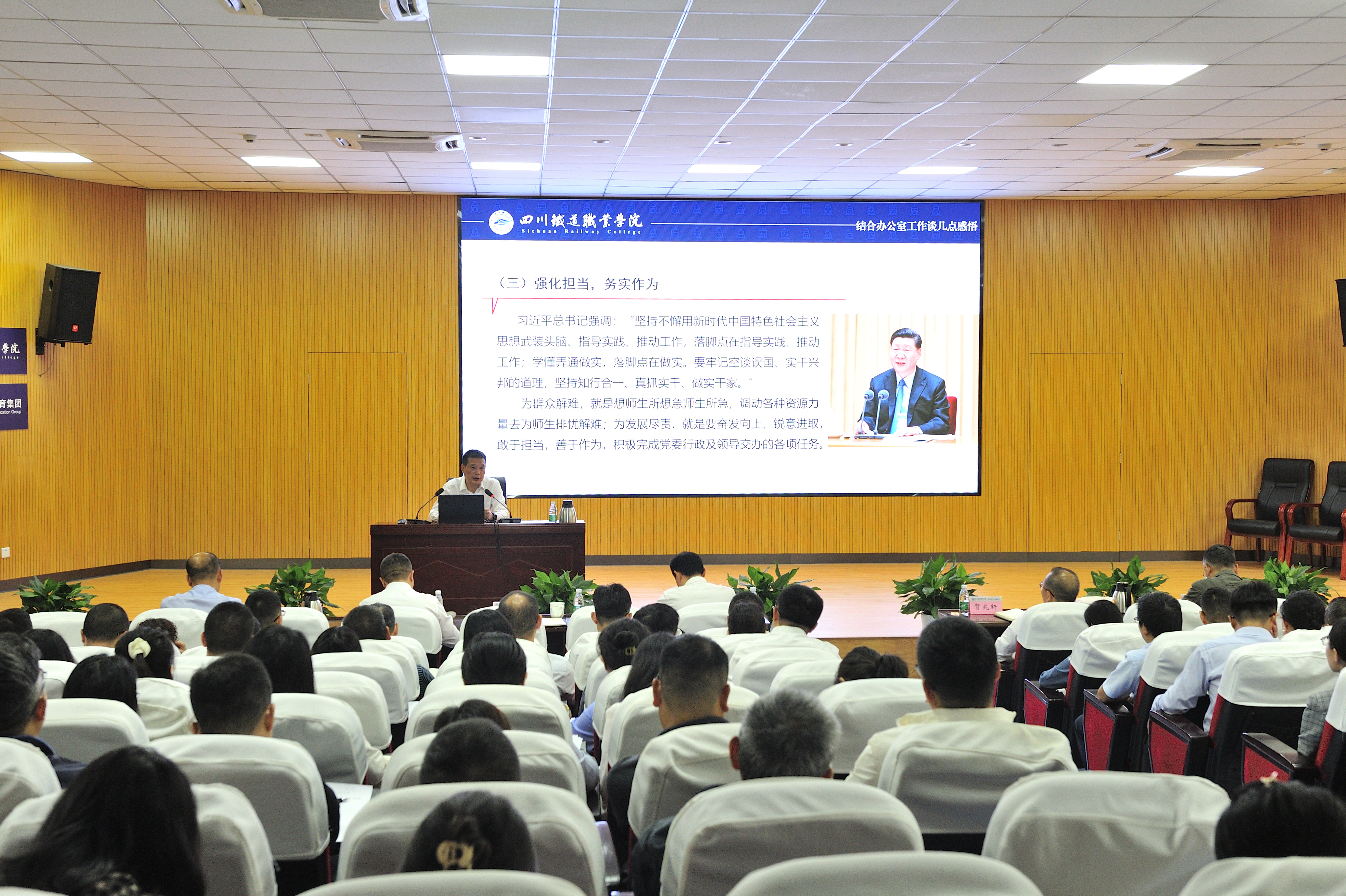 党委委员、副校长黄勇以“学思想 见行动 提能力 促发展”为题进行交流分享。他带领与会人员学习了习近平总书记对新时代办公厅工作作出的重要指示精神,即:提高政治站位、强化政治担当、提升政治能力、落实政治责任,建设让党放心、让人民满意的模范机关。他结合自身办公室及行管工作经验,提出了“一提高三强化”的具体要求,即:提高站位,准确定位;强化统筹,注重协调;强化担当,务实作为;强化服务,提升能力。