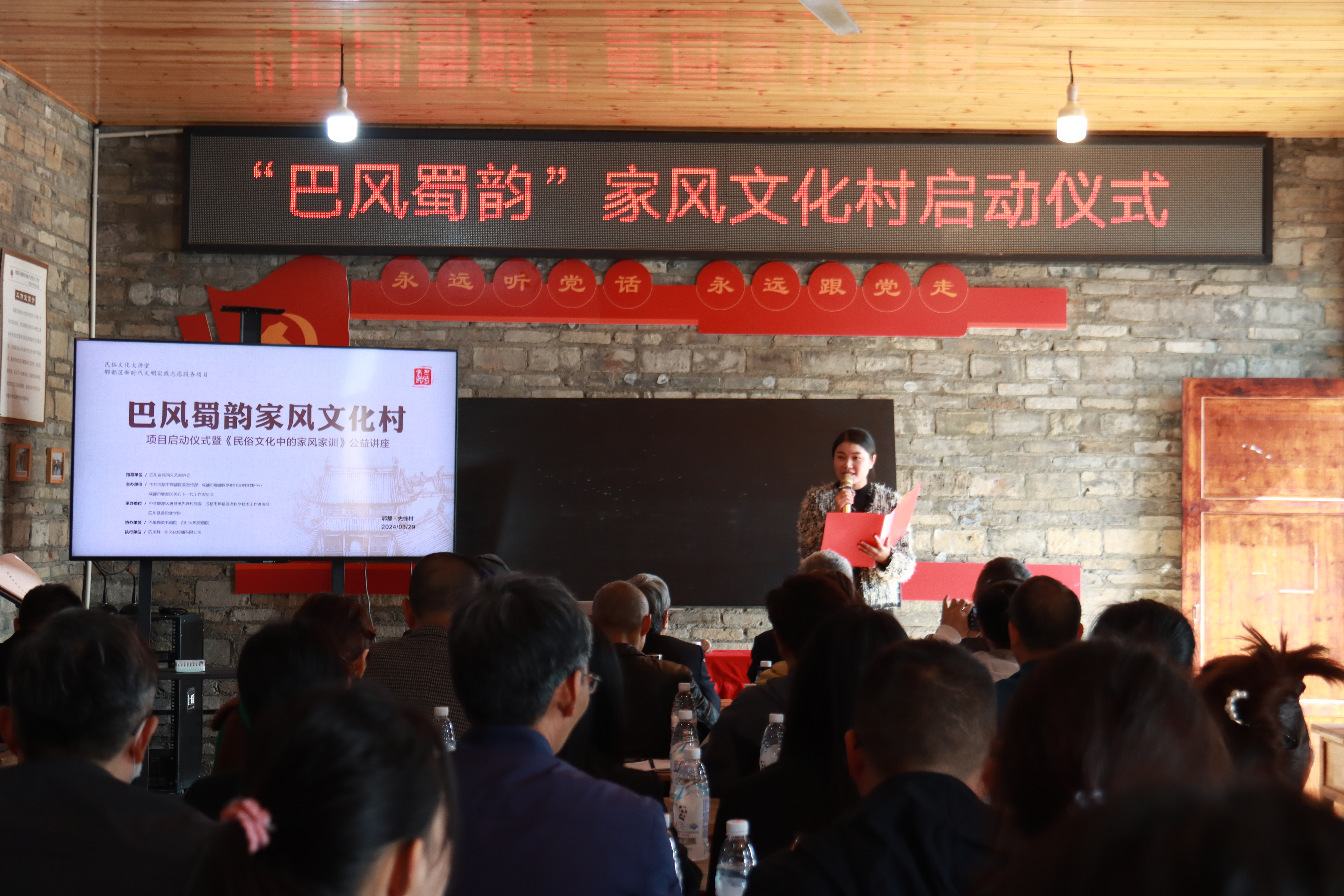 启动仪式暨《民俗文化中的家风家训》公益讲座由四川省民间文艺家协会指导,中共成都市郫都区委宣传部、郫都区新时代文明实践中心、郫都区关心下一代工作委员会主办,中共郫都区唐昌镇先锋村党委、成都市郫都区老科学技术工作者协会、beat365英国官方网站承办,四川鲜一步文化传播有限公司执行。活动吸引了众多嘉宾、专家学者及村民的参与。