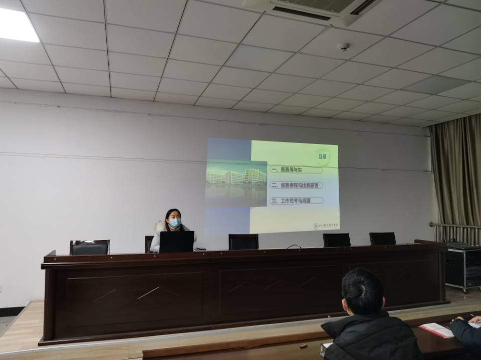 在分享会上,经济管理学院罗雪冰老师结合11月28日至29日举行的第八届四川省辅导员素质能力大赛的自身参赛经历,以《初心不负 以赛促进》为题,围绕“备赛得与失”“省赛赛程与比赛感受”“工作思考与展望”等三个方面进行了分享,并针对大赛赛程、评分标准、比赛项目等内容进行了详细汇报。