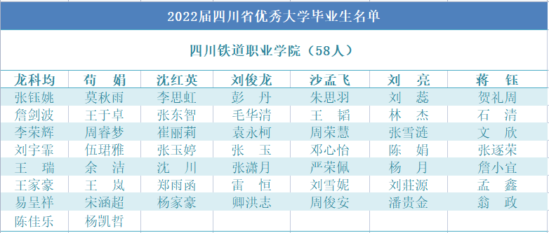 近日,四川省教育厅公布了2022届四川省优秀大学毕业生认定结果。经班级推荐、院系推荐、学校审核、教育厅复核,共计认定17611名大学生为2022届“四川省优秀大学毕业生”。其中,beat365共有铁道交通运营管理19T1班王瑞等58名学生入选。