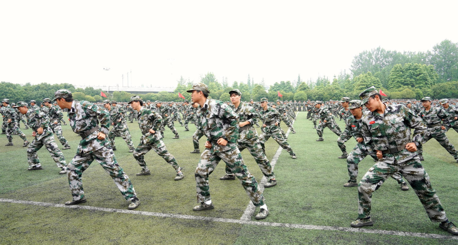 庄严的升国旗仪式后,军训汇报演出正式开始。战术小队和匕首术表演,动作干净利落、虎虎生风;分列式、军体拳和军体棍表演,动作整齐划一、气势震撼;花式表演队不断变换的“歼20” “校徽”“帆船”“长城”造型,充分展现了川铁学子昂扬向上、朝气蓬勃的良好精神风貌。历经十余天军事训练的同学们,目光炯炯、军姿挺拔、意志坚毅,以不畏苦累、接续奋斗的优良作风,圆满完成了各项训练任务。