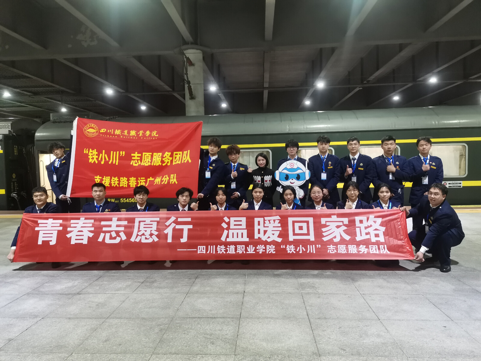 铁轨弦动,汽笛长鸣,南来北往,小川力行。2025年春运期间,学校“祖国再大,我也要助您平安回家”主题春运社会实践暨志愿服务活动,服务于北京、上海、广州、扬州、乌鲁木齐车队,以及成都东站、成都西站、内江北站枢纽,500余名志愿者和指导老师用青春热情温暖了百万旅客的归途,用专业素养在八纵八横铁路网中弘扬践行“厚德力行 博道通术”校训。