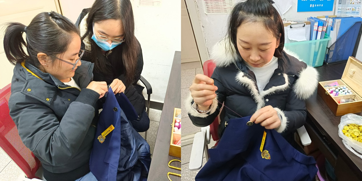 公寓宿管老师认真地为同学们缝补着衣服,一针一线都饱含对学子们真挚的爱,一张张笑脸就如冬日里的一抹阳光,温暖了你我他。活动期间,宿管老师为同学们缝补衣裤381件,钉纽扣500余颗,得到广大同学一致好评。同学们纷纷表示:这个冬天太温暖,在家有父母宠,在校有宿管老师爱!以后有坏掉的衣服也不怕了,课余时间还可以跟宿管老师学学针线活。