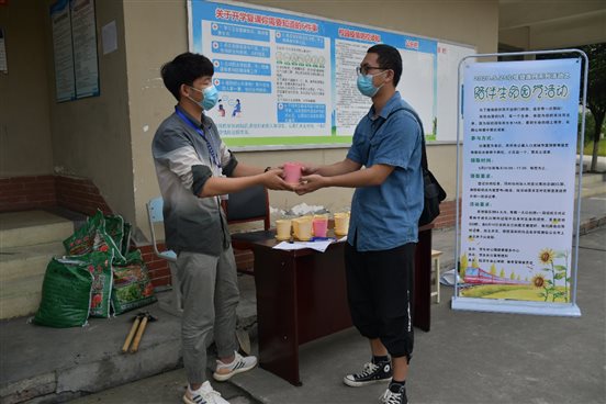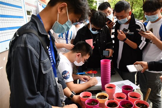 院学生会心理部和宿管会于5月28日在各栋寝室楼下开展了“陪伴生命”园艺活动。 以寝室为单位,在所在公寓入口或辅导室领取向日葵种子两粒、小花盆一个、营养土适量。