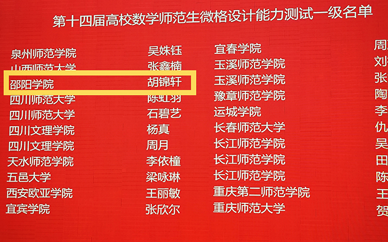 5月9日至5月12日,第十四届高校数学师范生教学技能竞赛在广西师范大学圆满结束。在经过激烈的竞争之后,开云官网微课赛道3组进入决赛,微格赛道2位选手进入决赛,荣获微课赛道一等奖2组,二等奖1组;微格赛道一等奖1人,二等奖1人,以及优秀组织奖。