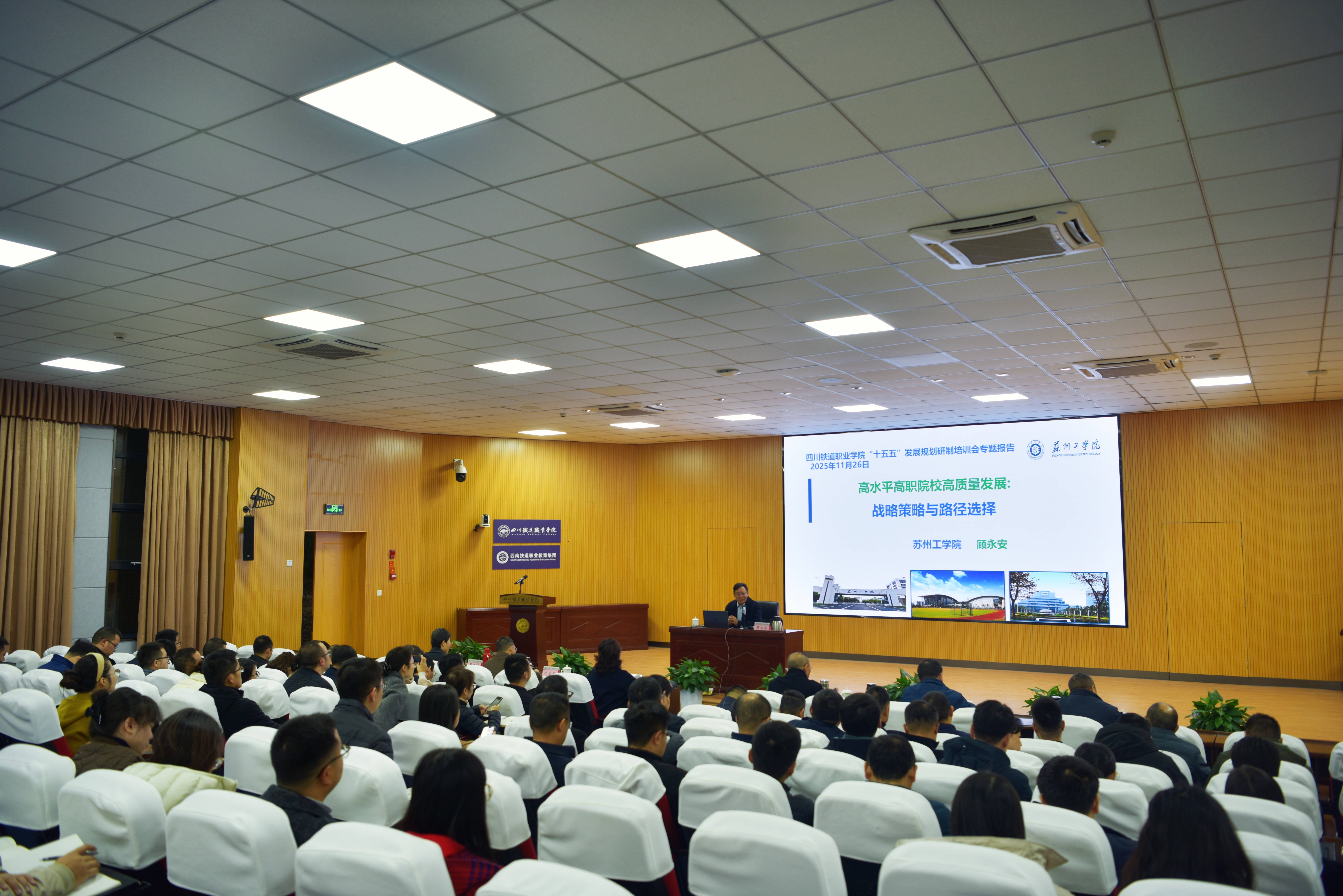 顾永安以《高水平高职院校高质量发展:战略策略与路径选择》为题,深入剖析了新时代高职院校高质量发展所面临的新方位、新特征,客观审视职业教育发展的新趋势;系统阐述了高水平高职院校高质量发展的战略构思,强调目标引领、绩效引领和战略引领;详细讲解了实现高质量发展的具体方法与可行路径,剖析实践案例,极具指导性和操作性。专题报告高屋建瓴、逻辑严密、深入浅出,为学校科学研制“十五五”规划提供了深刻的理论指导和实践启示。