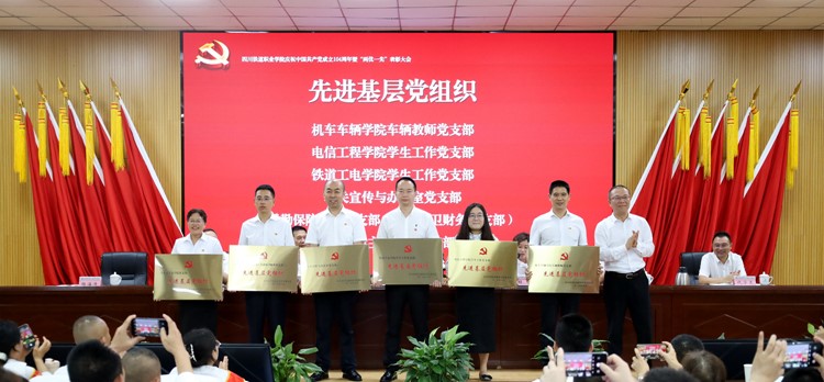6月30日下午,学校在成都校区学术报告厅召开庆祝中国共产党成立104周年暨“两优一先”表彰大会,党委书记贺兆轩以《勇于担当 敢于胜利 进一步汇聚干事创业强大力量》为题作专题党课,党委副书记、校长赖芳主持大会。