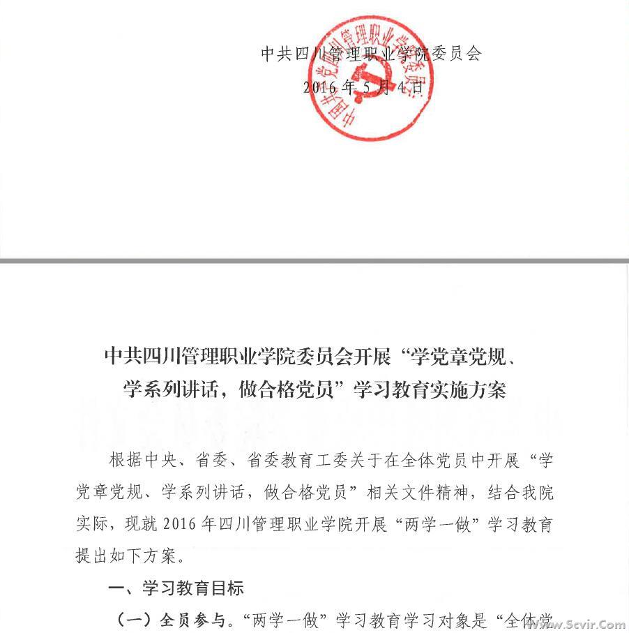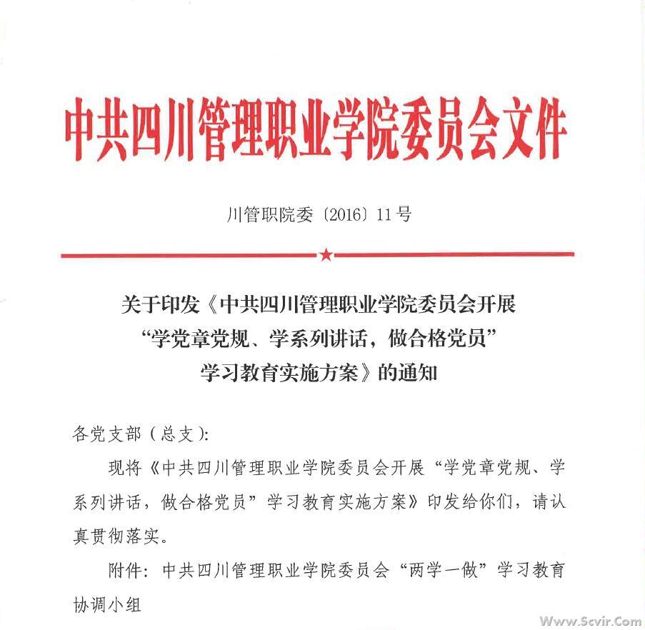 关于印发《中共四川管理职业学院委员会开展“学党章党规、学系列讲话,做合格党员”学习教育实施方案》的通知