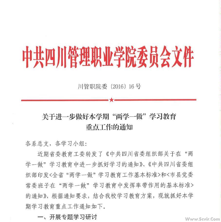关于印发《中共四川管理职业学院委员会开展 “学党章党规、学系列讲话,做合格党员” 学习教育实施方案》的通知